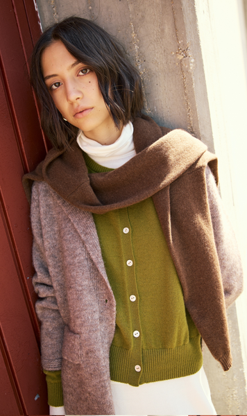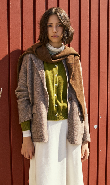 Cárdigan estilo blazer de punto en mezcla de alpaca color topo.