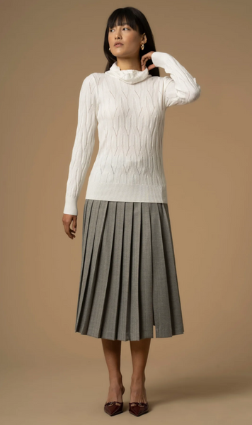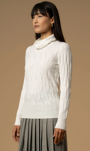 Suéter con cuello vuelto caído, manga larga y y relieve con forma de espigas.